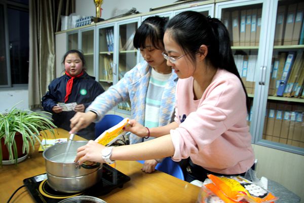 冒着热气的汤圆摆在大家面前,芝麻馅、豆沙馅、香芋馅……南北口味不同又如何,任你加糖加盐抑或加香菜,汤圆都是一口包。同学们在品尝汤圆的同时,也进行了第一个小游戏——猜灯谜,虽然灯谜有些难度,但同学们都不甘示弱,斗才斗智,没让一个灯谜成为未解之谜。
