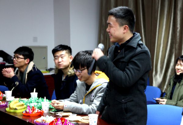 第三个游戏是心有灵犀,同学们自发组成五人一组。比划者有话说不出,抓耳挠腮的样子不禁令人捧腹。时间过得很快,八点钟左右,伴随着欢笑声与气球爆破声,学生会主席蔡行楷宣布晚会圆满结束。