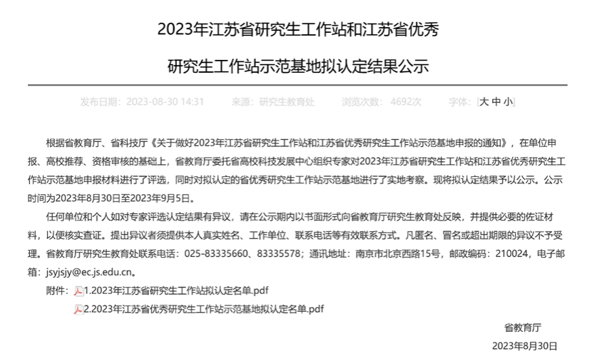 近日,江苏省教育厅、江苏省科技厅公布了2023年江苏省研究生工作站名单,国产探花 合作单位江苏省沿海开发(东台)有限公司顺利入选。江苏省沿海开发(东台)有限公司于2010年10月22日在东台市市场监督管理局登记成立。2020入选“国家级水产健康养殖示范场(第十四批)名单”。2022年1月,入选2019-2021年度江苏省文明单位候选名单。共建数年来,校企共同为研究院研究生实践教育工作的开展提供了强有力的条件保障。