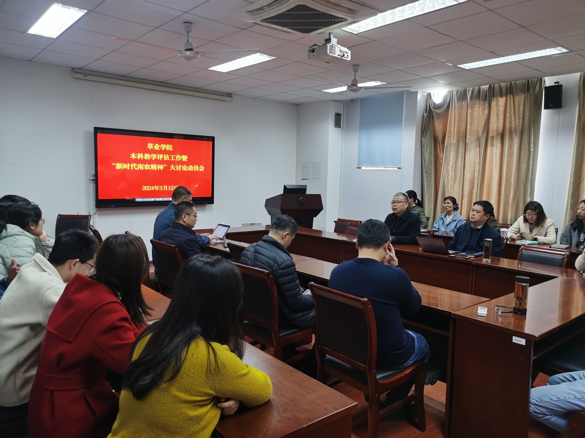 召开本科教学评估工作暨“新时代南农精神”大讨论动员会,学院全体教职工参会,会议由院党委书记李俊龙主持。