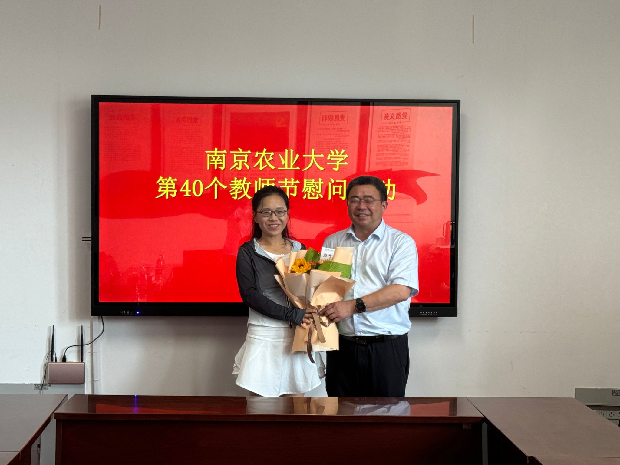 董维春副校长代表学校向各位教师送上了节日的祝福,并为教师代表一一送上献花。他对各位教师在教学科研岗位上默默奉献、辛勤付出、不懈奋斗表示感谢。他希望广大教师弘扬和践行教育家精神,深化教育教学改革,更好地服务学校农业特色世界一流大学建设目标。