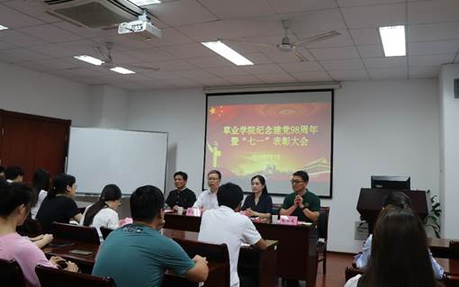 庆祝建党98周年暨“七•一”表彰大会在理科南楼F304隆重召开。此次大会由学院党总支副书记高务龙主持。