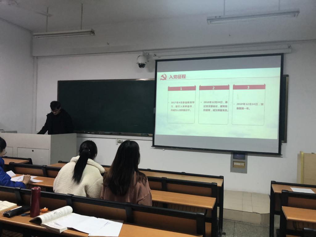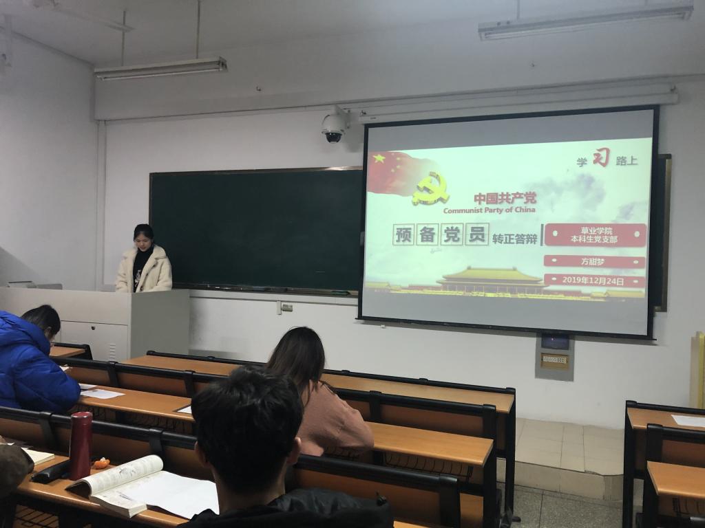 按照党组织关于预备党员转正的程序,首先,预备党员钟友辉同志与方甜梦同志针对作为预备党员一年来从对党的认识、个人经历以及在校表现几个方面取得的进步向支部作了简短汇报。随后本科生党支部支委成员冯冠楠同志与达珍措同志从政治思想、学习、工作生活等方面对钟友辉同志与方甜梦同志一年以来的表现发表了意见。