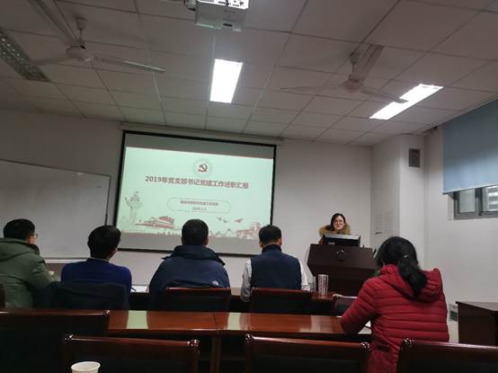 教师党支部书记邵涛、研究生第一党支部书记张敬、研究生第二党支部副书记季晓敏、研究生第三党支部书记赵娜和本科生党支部书记武昕宇先后将各个党支部2019年度的工作进行了述职汇报。汇报主要从支部工作开展情况、存在的主要问题和形势分析、下阶段的工作思路和措施等方面展开,重点介绍了党员发展工作情况、“不忘初心、牢记使命”主题教育情况、“主题党日”活动情况和“三会一课”开展情况,认真总结成绩,深入查找问题,进一步明确了今后的工作思路和努力方向。
