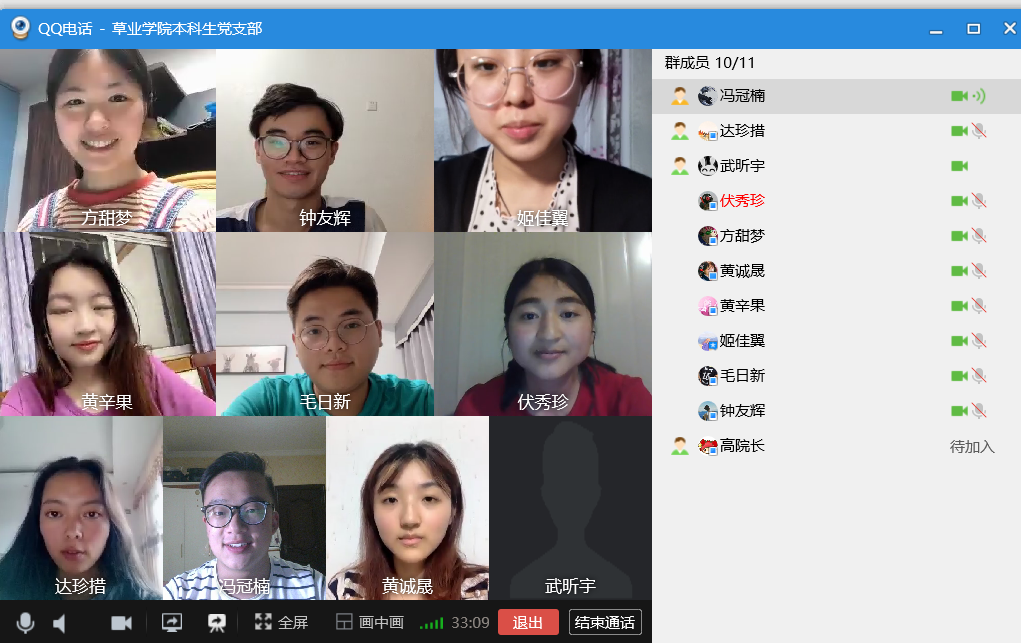 本科生党支部利用QQ视频召开了线上学习会,应到党员10人,实到党员10人,本科生党支部书记武昕宇主持了本次大会。
