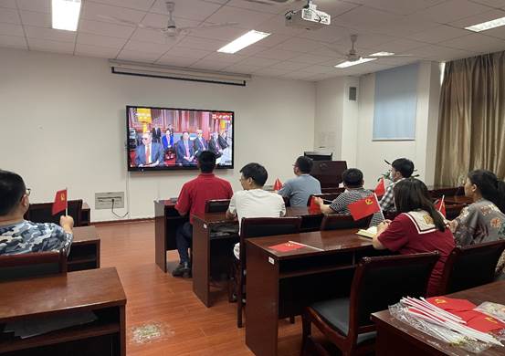 师生代表齐聚理科南楼F304会议室,集体观看“庆祝中国共产党成立100周年大会”现场直播。大家反响热烈,纷纷为党送上最诚挚的祝福:生日快乐,永葆青春!