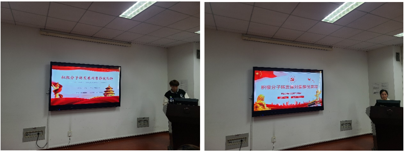会议第二项,由杨逸诚、姜恒越、黄心如、隆海宝、王梦各自的入党介绍人向支部全体党员同志介绍了他们的思想觉悟、为人处事以及科研工作和学习生活情况,支部书记赵娜老师以及支部其他党员同志也对其五人平时的表现给予了充分肯定。