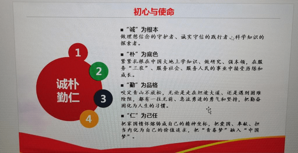 吴智丹以“新农人的使命”为题,分别从“南农大的贡献与影响”、“南农人传承的精神”、“新时代南农人的担当”三个方面讲述了南农大的发展与南农人的精神以及新时代对南农新农人的要求与启示。吴智丹带领大家重温了南农大校史,从三江师范学堂、私立金陵大学到如今的国产探花