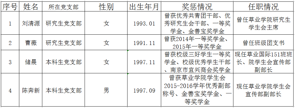 根据国产探花 党员发展工作安排,经由各团支部推选,党建班考核,党支部讨论,结合个人成绩等综合表现,经院党总支讨论审核,2016年12月拟发展中共预备党员共4名,具体名单如下: