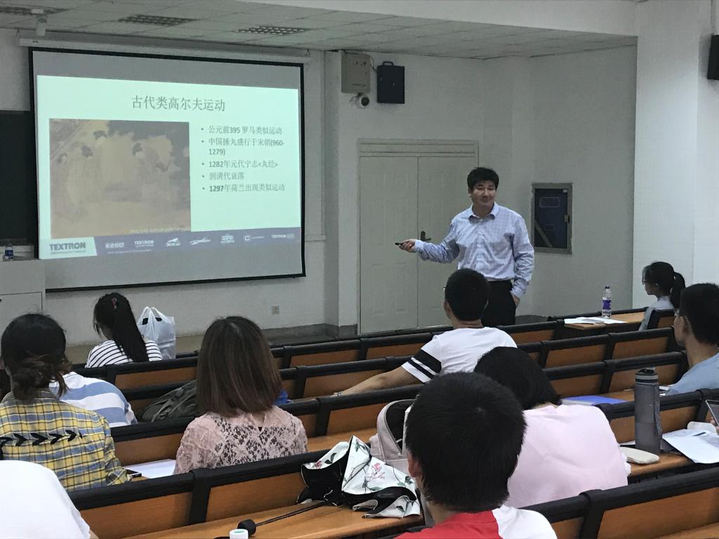 刘鲁先生和刘屹松先生均是资深的草坪机械领域的专业人士,他们以高尔夫运动的起源及发展史开始,从行业草坪体育运动的整体发展角度,介绍了草坪机械的发展历程,以及当代草坪机械研发中的典型案例;从全世界社会经济发展对体育运动发展的影响,重点介绍了以高尔夫球运动为典型代表的体育运动对草坪产业的需求,又从国内目前高尔夫球场建设、运营情况阐述了行业产业发展对有志从事相关职业的草业专业人员职业生涯的影响。同时,也结合师生们关心的职业待遇等问题,细致的讲解了高尔夫球场建设领域的相关问题。