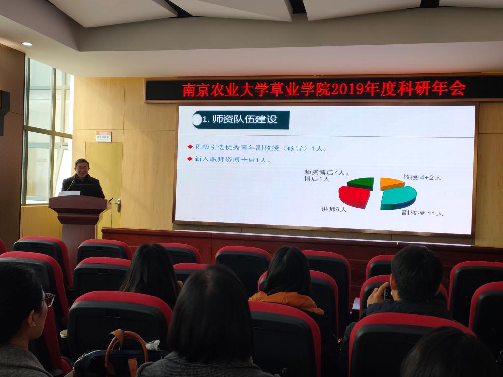 2020年1月18日,学院在国产探花 句容草坪研究院召开了2019年度学术年会。学院全体教师参加了会议 ,院党总支书记李俊龙、院长郭振飞,副书记、副院长高务龙出席会议。