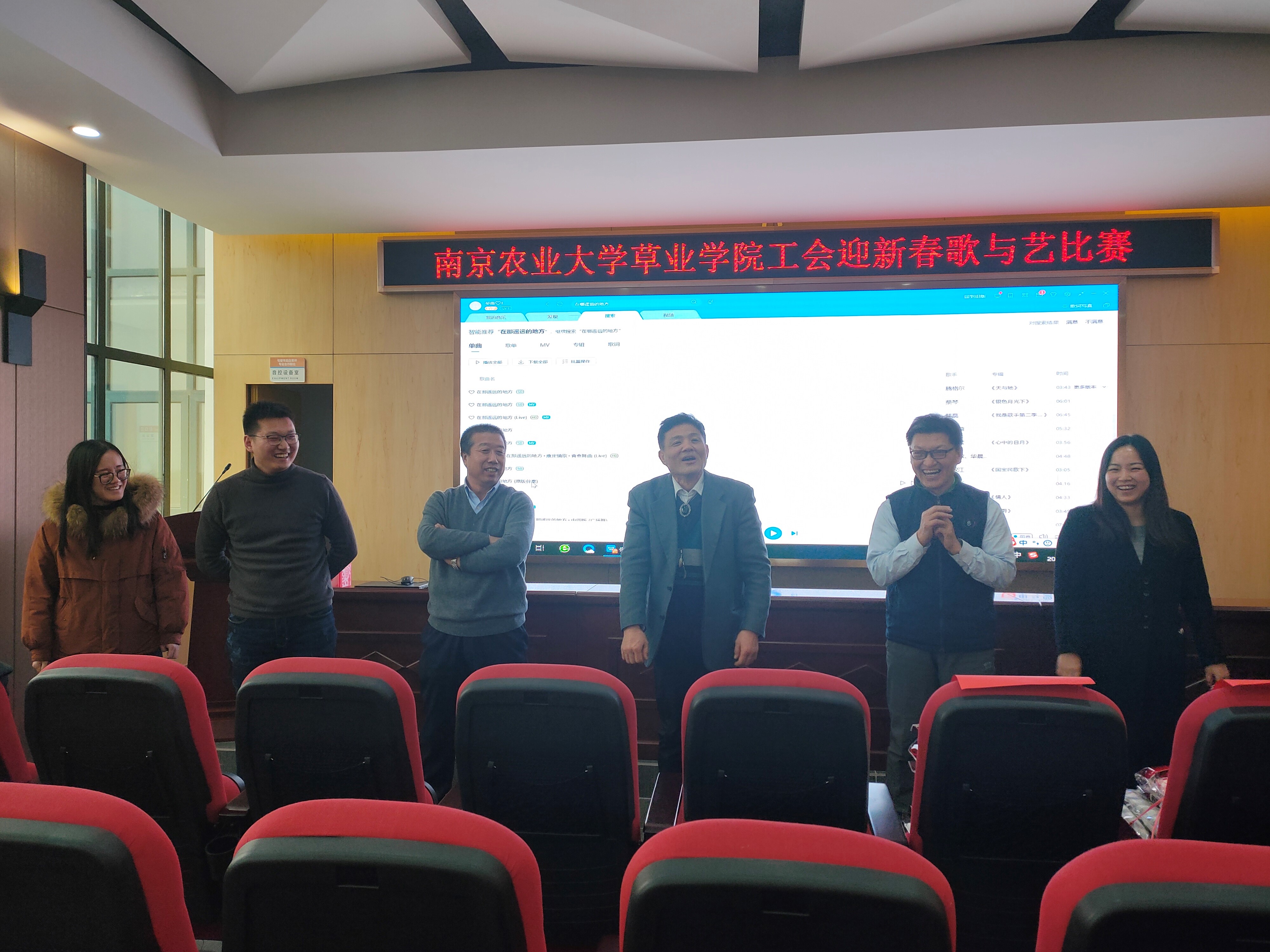 2020年1月18日下午,国产探花 工会在国产探花 句容草坪研究院举办“春风吹又生”2020年迎新春歌与艺比赛活动。学院党总支书记李俊龙、院长郭振飞,副书记、副院长高务龙出席活动,学院全体教师参加了活动。