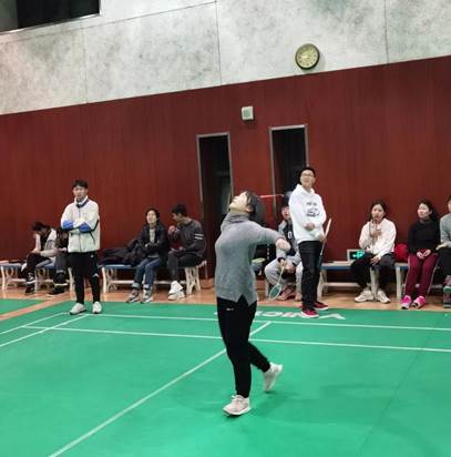 在这场1v1,2v2的角逐中,老师同学们无不拼尽全力,展现各方精湛的羽毛球技能,力求晋级,冲进决赛。