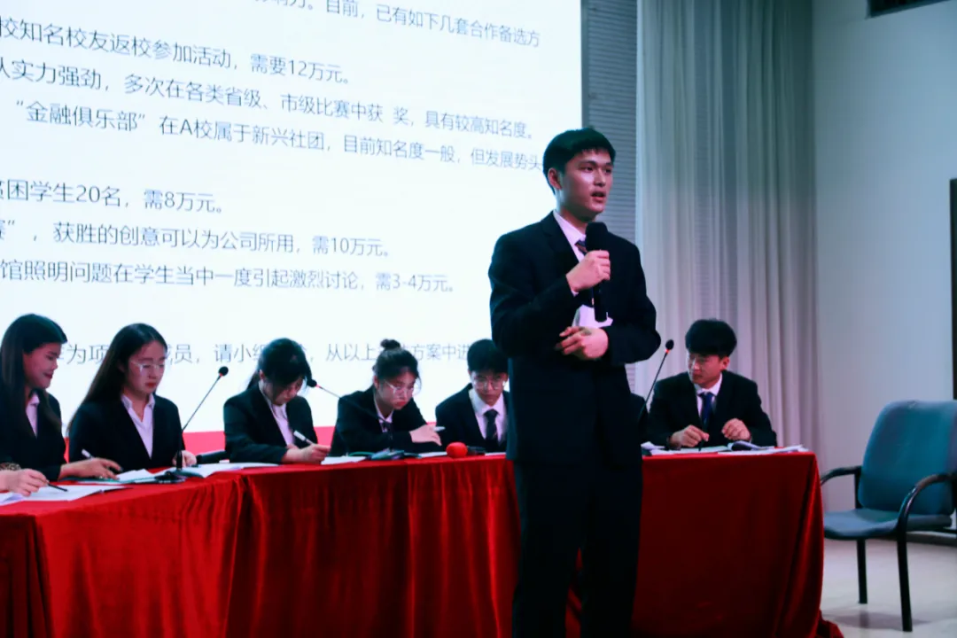 竞选演讲结束后,进入到无领导小组讨论环节。在题目公布之后,各位候选人在半个小时内完成案例解读、分别陈述和自由讨论等环节,最终小组统一意见并选出一名代表发表总结陈词。各位候选人在该环节表现了其清晰的思维逻辑,各显风采。