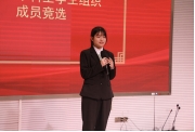 接下来为竞选演讲环节,7名候选人:龚蔬雨、李婧、唐梦圆、李佳蕾、张程、李峥、黄孜依次进行演讲,每位候选人均有5分钟时间进行演讲,从个人简介、工作经历、职能理解和工作设想等方面进行阐述。
