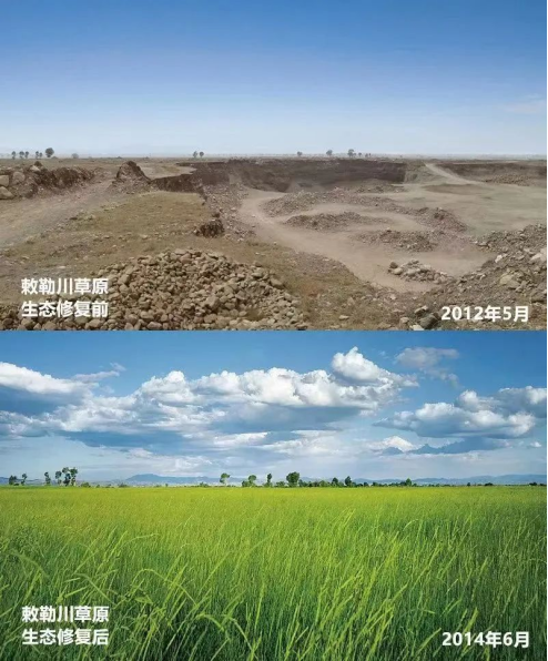 敕勒川草原修复前后对比(图源蒙草公司公众号)