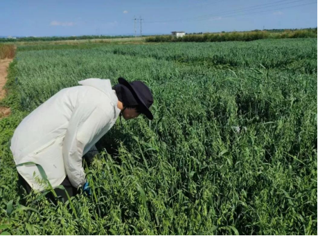 7月17日上午,呼和浩特一组的成员们在雷瀚老师和田振东老师的带领下,在燕麦地继续开展关于燕麦鲜重的种质资源评测。同学们在燕麦地的每个小区内,随机选取垄长为一米的区域,然后对区域内的燕麦进行收割,并将其区段内的所有燕麦放入大网中进行称重,再随机抽取大网中的10株燕麦放入小袋中称重记录并贴好标签用于后续的数据测量。