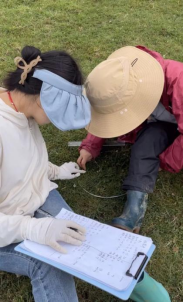 除了参与设计盆栽实验之外,两位同学还跟随孙逍老师和实验室师兄师姐一起进行了南山牧场草地物种的样方调查,通过查找文献并结合南山草地特点,自行设计样方框大小,调查具有代表性的草坡上的植物物种类型和株高。