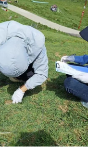 在确定下退化草地的修复样地后,两位同学跟随师兄师姐前去采集土样,之后带回实验室用于布置盆栽实验 ,从样地中挖回的土壤会先后进行过筛、翻混、装盆后,在其基础上设计不同的实验处理,以获得更加完善的结果。