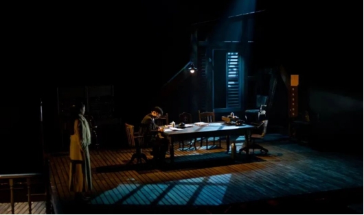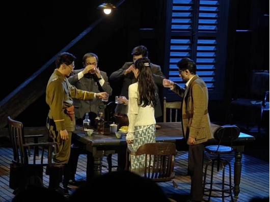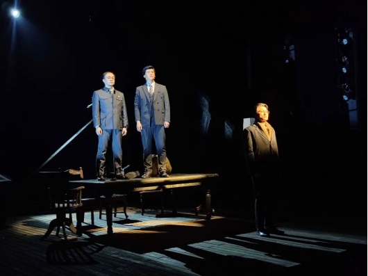 从《0423》中我看到了南京解放前夕的暗流涌动,每一次人物的试探都将故事情节步步推进,伴随着的是逐渐紧张的气氛。在一步一步地心理拉锯之下,事态发展趋于明朗。在现实与历史的随意切换使得破碎的时空有了连贯性。舞台上人物的一举一动都暗藏玄机,给人以多变和灵动之感。特别是最后用蒙太奇手法呈现吴科长的真实身份,给我带来了思维与精神的双重冲击。我们更看到了那无数像吴科长一样伟大的共产党人为解放南京,解放中国所做出的伟大贡献。