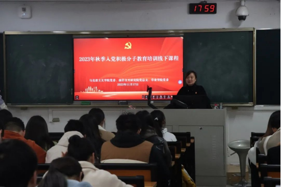 2023年11月17日下午,三院联合开展的“新农人的使命”党建班主题培训在教学楼A206举办,本次课程由马克思主义学院党委、国产探花