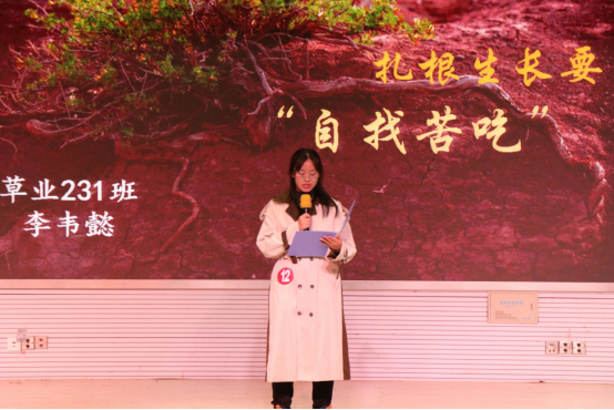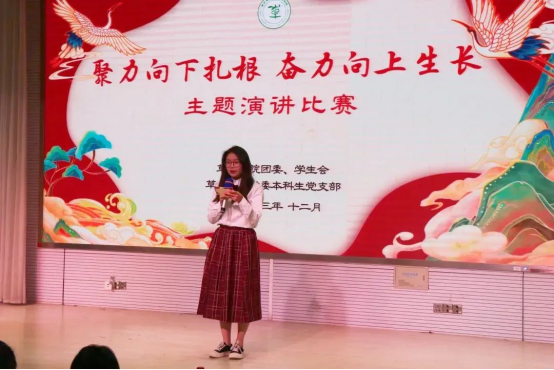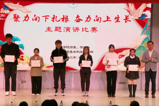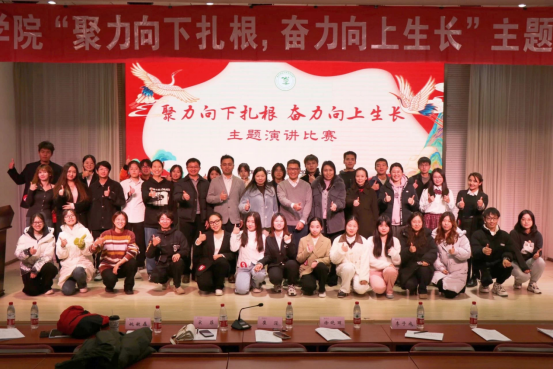 于教四楼报告厅举办以“聚力向下扎根,奋力向上生长”为主题的演讲比赛。