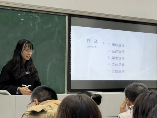 本科生团委学生会各部门、研究生会各部门依次上台进行年度总结汇报,介绍本部门的人员构成、工作职能、具体工作开展情况与未来工作计划等。