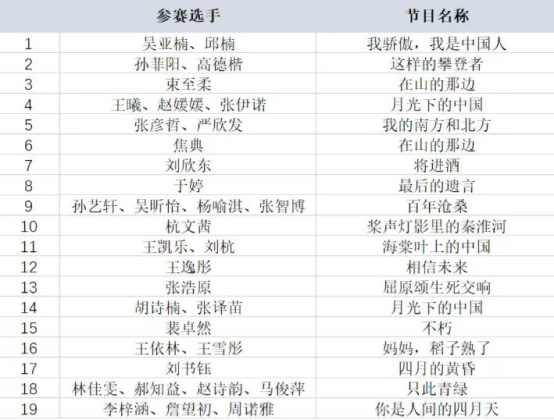 决赛表演顺序由抽签结果决定,选手根据抽签顺序依次上台表演,每组作品表演时长为3-6分钟。