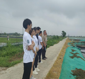 7月10日上午,相北村党总支书记卞轲与同学们进行交谈。卞轲毕业于我校动科院水产专业。他对于自己的家乡、产业和专业充满热爱。交谈中,同学们深入地了解了当地产业带动乡村振兴的情况。同学们深刻认识到人才对地方经济社会发展的重要性。在卞轲的带领下,同学们来到了试验田进行实地调研。