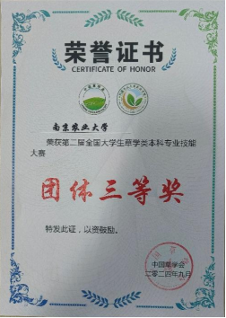 学生代表队荣获第二届全国大学生草学类本科专业技能大赛团体三等奖。