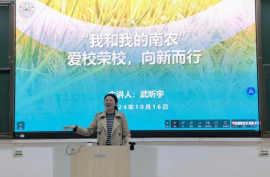 武昕宇进行了“爱校荣校、向新而行”主题教育。她说,我们即将迎来学校建校122校庆日,各项校庆活动精彩纷呈。为培育学生爱校情怀和荣校热情,推动以“诚朴勤仁”为核心的南农精神,在新时代、新校区、新起点、新征程中传承实践,她以自己的学习与工作经历为切入点,用主楼大草坪建植过程中的故事,展现国产探花