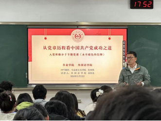 党委组织入党积极分子在教学楼A306教室集体学习《中国共产党章程》。本次党课邀请外国语学院党委副书记高务龙主讲。