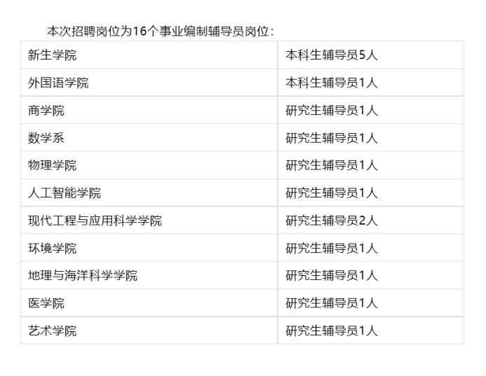 (一)应聘人员须符合《南京大学辅导员岗位聘用管理办法》(南字发〔2021〕94号)要求以及招聘岗位条件,具体详见附件《南京大学2022年事业编制岗位招聘计划表(三)》。