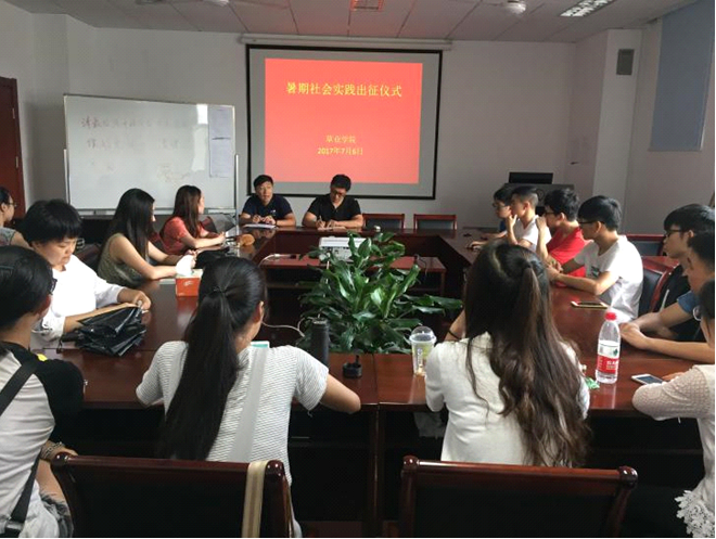 暑期社会实践出征仪式于7月6日下午两点半理科南楼F304成功举办。学院2015级全体同学参加了本次出征仪式,学院的高务龙副书记和带队的老师了出席了出征仪式。