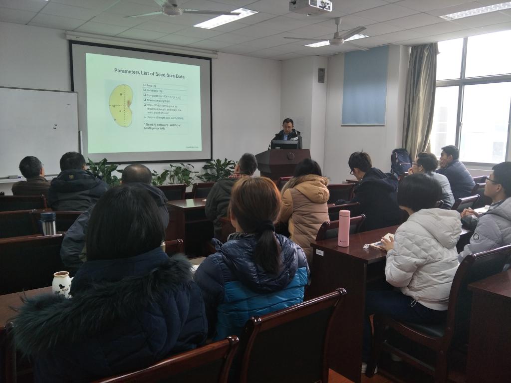 4日上午,柴茂峰博士做了题为Legume Crops & Sustainable Agriculture的主题报告,解析了蒺藜苜蓿种子的物理休眠机制。柴博士所在研究团队在豆科模式物种蒺藜苜蓿中发现转录因子KNOX4直接调控参与脂肪酸代谢CYP86A基因的表达,改变了种皮中的磷脂成分和结构,影响了蒺藜苜蓿种子的吸水性,最后导致种子的物理休眠状态改变。学院部分教师和研究生参加了报告会并作交流互动。