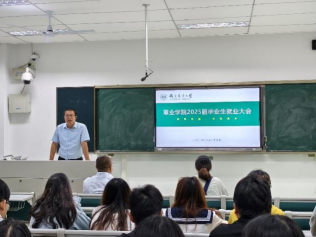 2025届本科生和研究生就业动员会。学生工作处大学生就业指导与服务中心主任周建鹏,我院党委副书记韩立新、学生工作办公室主任兼团委书记武昕宇,以及全体2025届本科生、研究生参加动员会。动员会由韩立新主持。