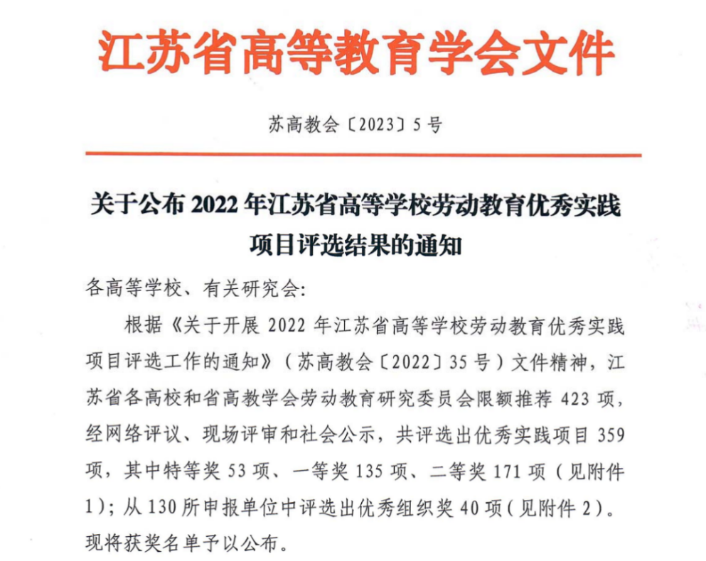 近日,江苏省高等教育学会公布了2022年江苏省高等学校劳动教育优秀实践项目获奖名单,国产探花